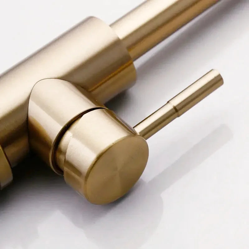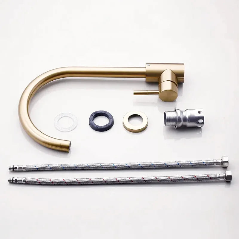 Robinet de cuisine en acier inoxydable avec finition résistante à la corrosion, aux taches et à l’usure. Mitigeur à commande unique permettant le réglage de la température et du débit. Bec orientable adapté aux éviers simples ou doubles.